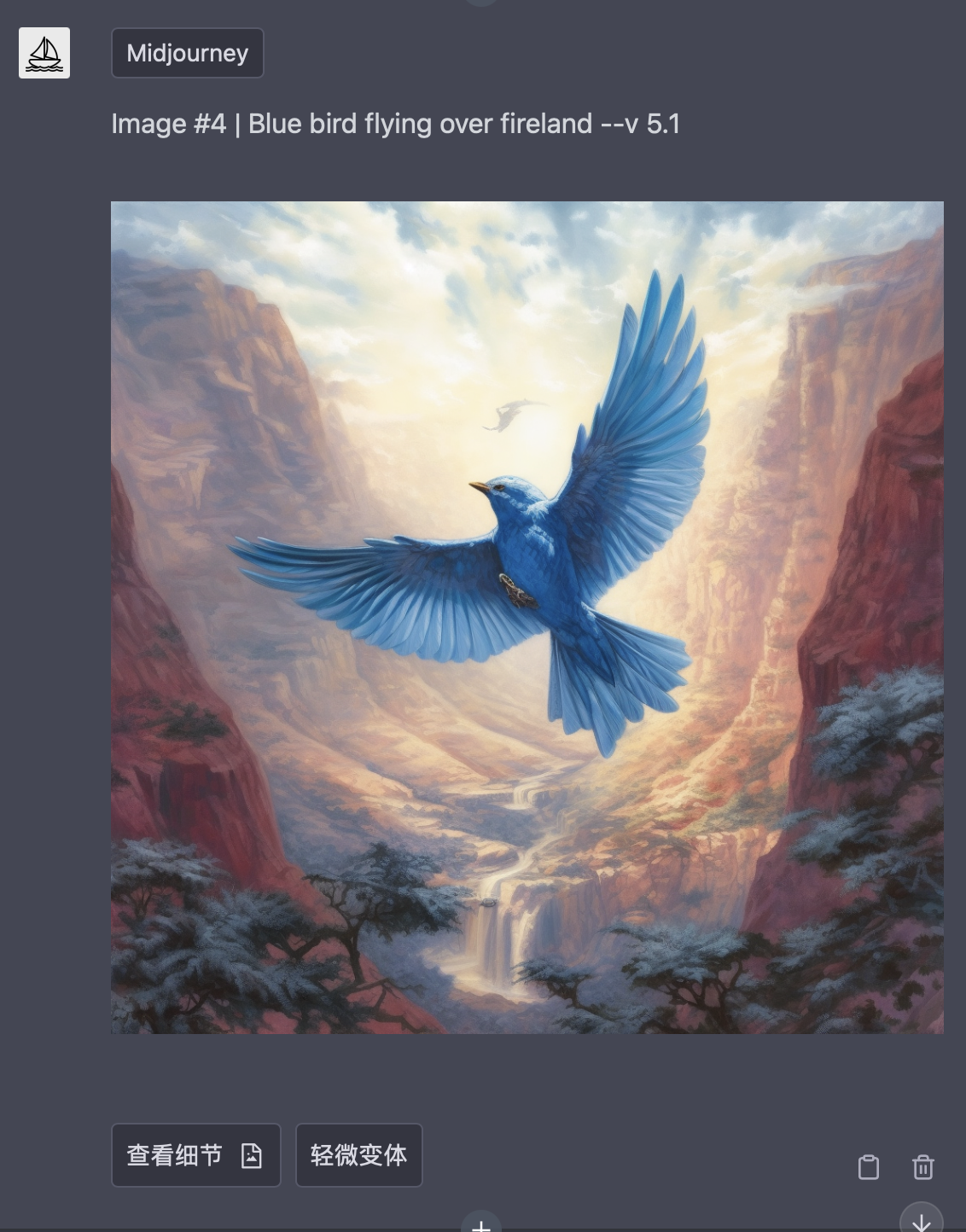 在选择了放大后,您可选择再以此图片继续变种,或点击查看细节保存图片