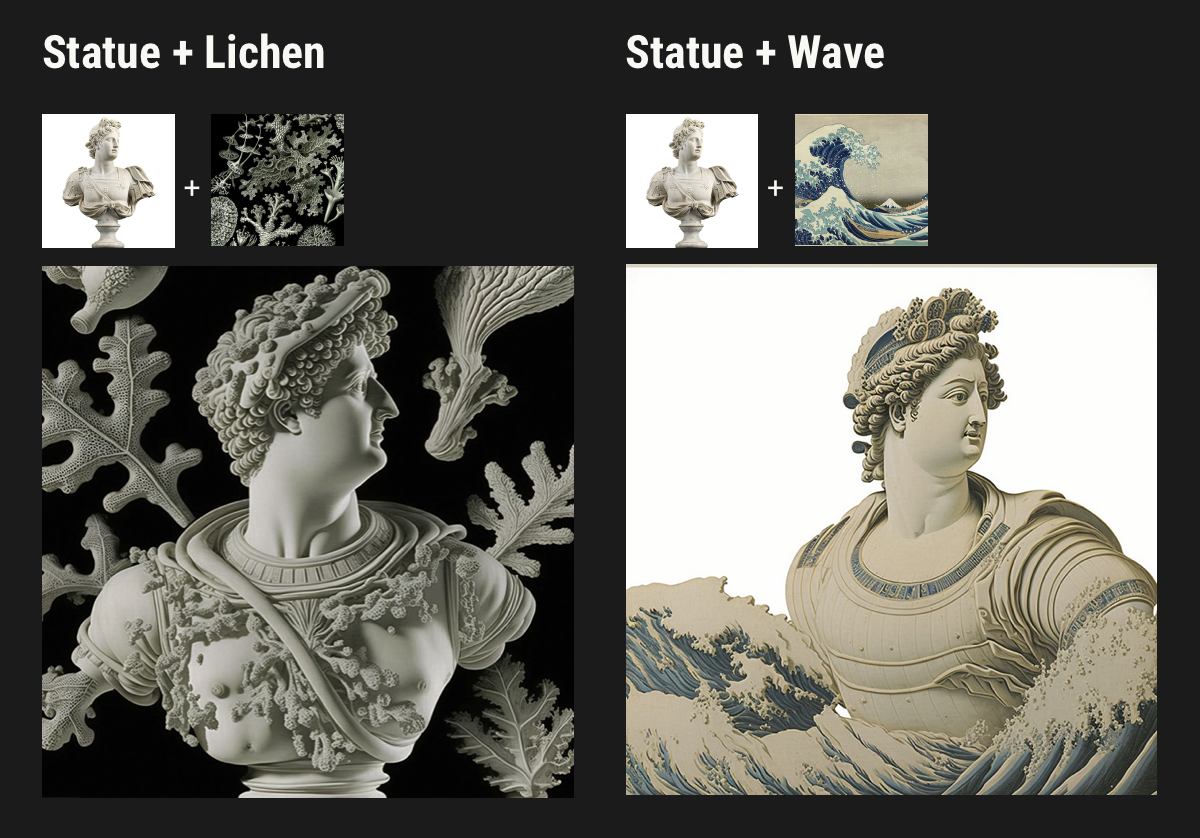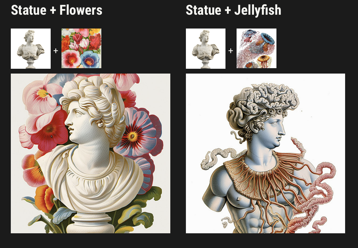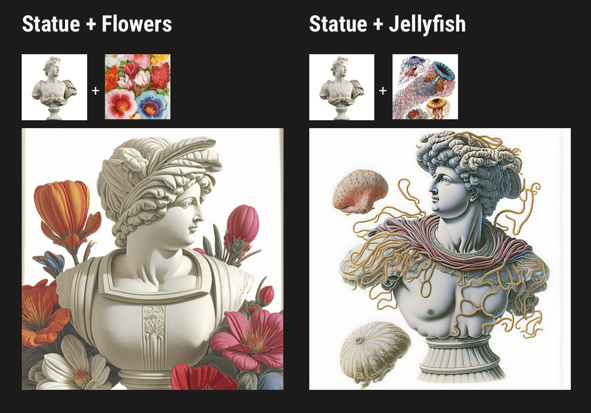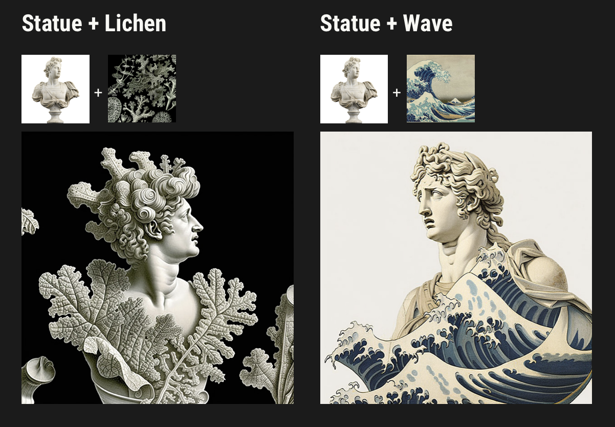 您可以将图像作为作图魔咒的一部分,以影响生成作业的构图、风格和颜色。图像提示可单独使用,或与文本魔咒一起使用,尝试将不同风格的图像组合在一起,以获得最令人兴奋的图像结果