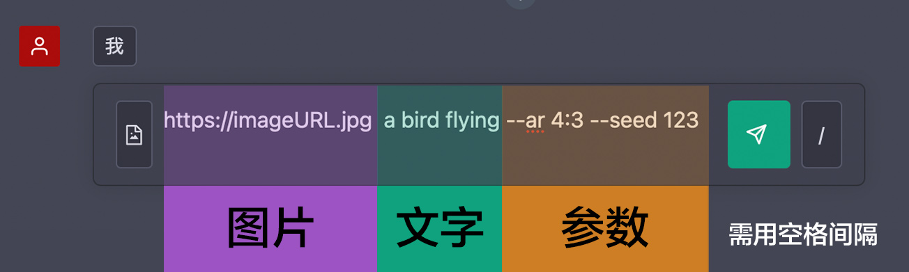 要使用垫图魔咒,请输入或粘贴存储在线上的图像的url,或直接在输入框中上传,图片url地址必须以.png、.gif或.jpg这样的扩展名结尾。添加图像地址后,您可能需要继续添加文本魔咒和参数以完成提示的制作