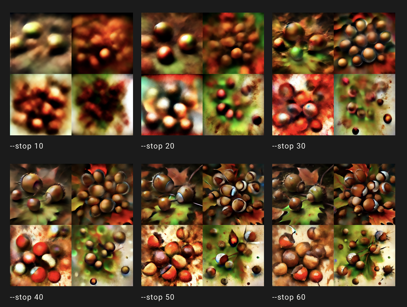 --stop<数字10-100>参数在过程的中途停止作业。在较早的百分比处停止作业可能会产生更模糊、细节少的结果