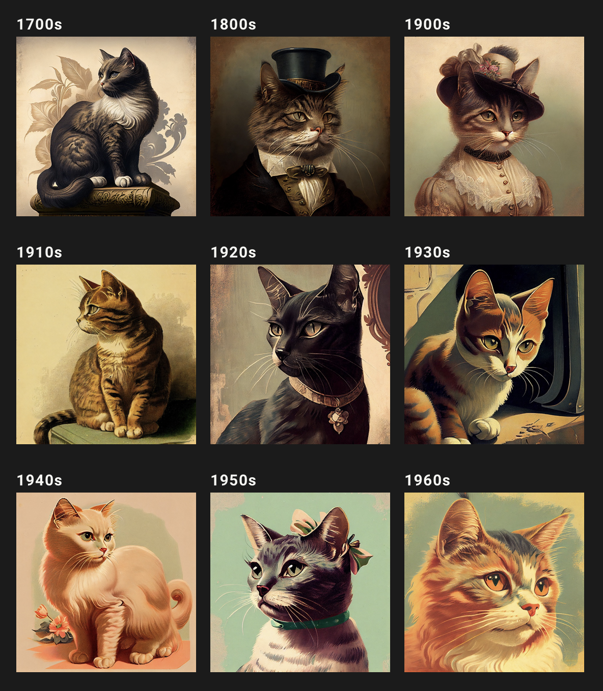 即使是简短的单个单词提示也会生成Midjourney默认样式的美丽图像,但是您可以通过结合艺术媒介、历史时期、地点等概念来创建更有趣的个性化结果。